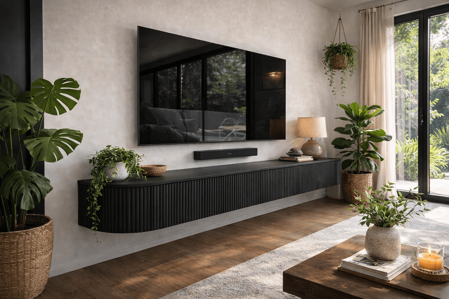 Perfect install. Everything exactly as described. Frame TV was immaculate, everything hidden. And the big 85 inch and soundbar were centered perfectly to suit my room and all connected and laid out for me.