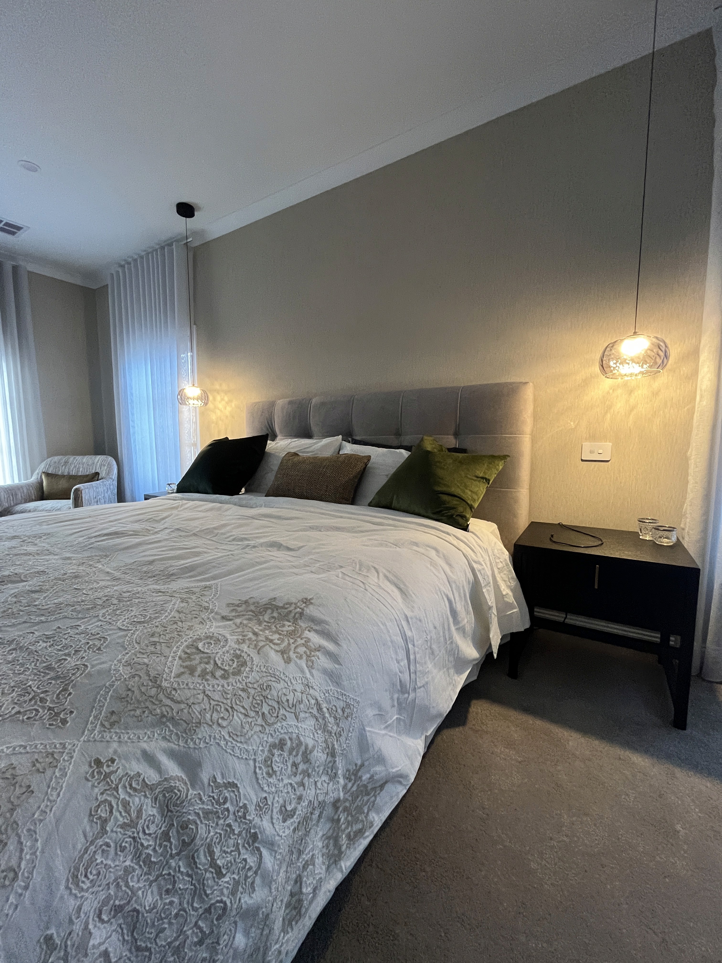 This service is for pendant lighting installed neatly, safely, and positioned correctly for a bedroom setting.