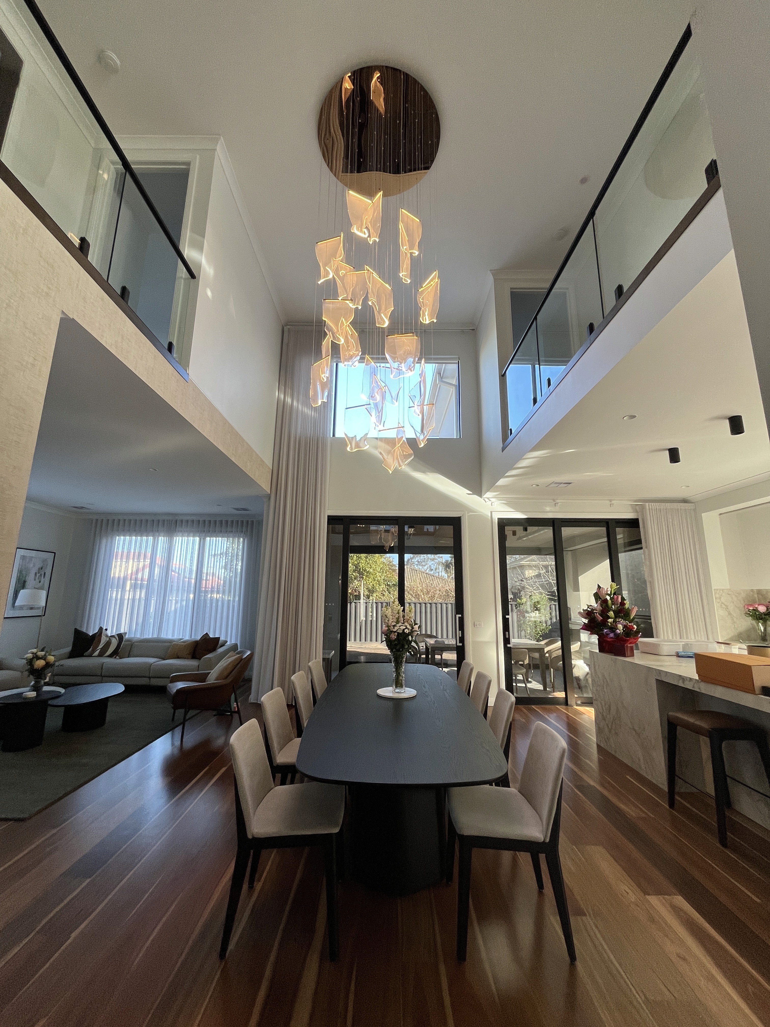 Before any work begins, we confirm the chandelier position, drop height, and switch location with you, based on ceiling height, room layout, and how the light will be used.