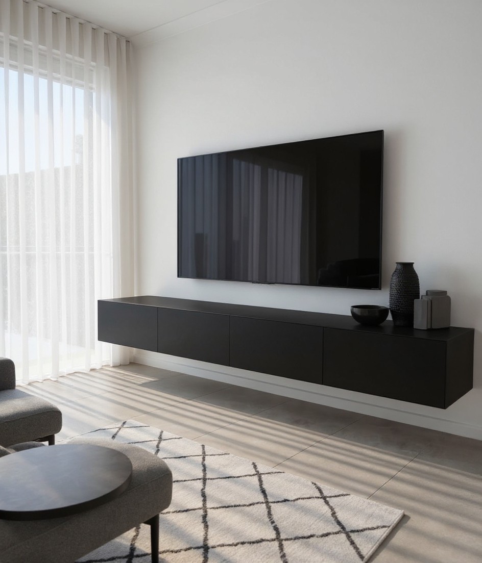 Once you see a TV wall anchored in deep black,