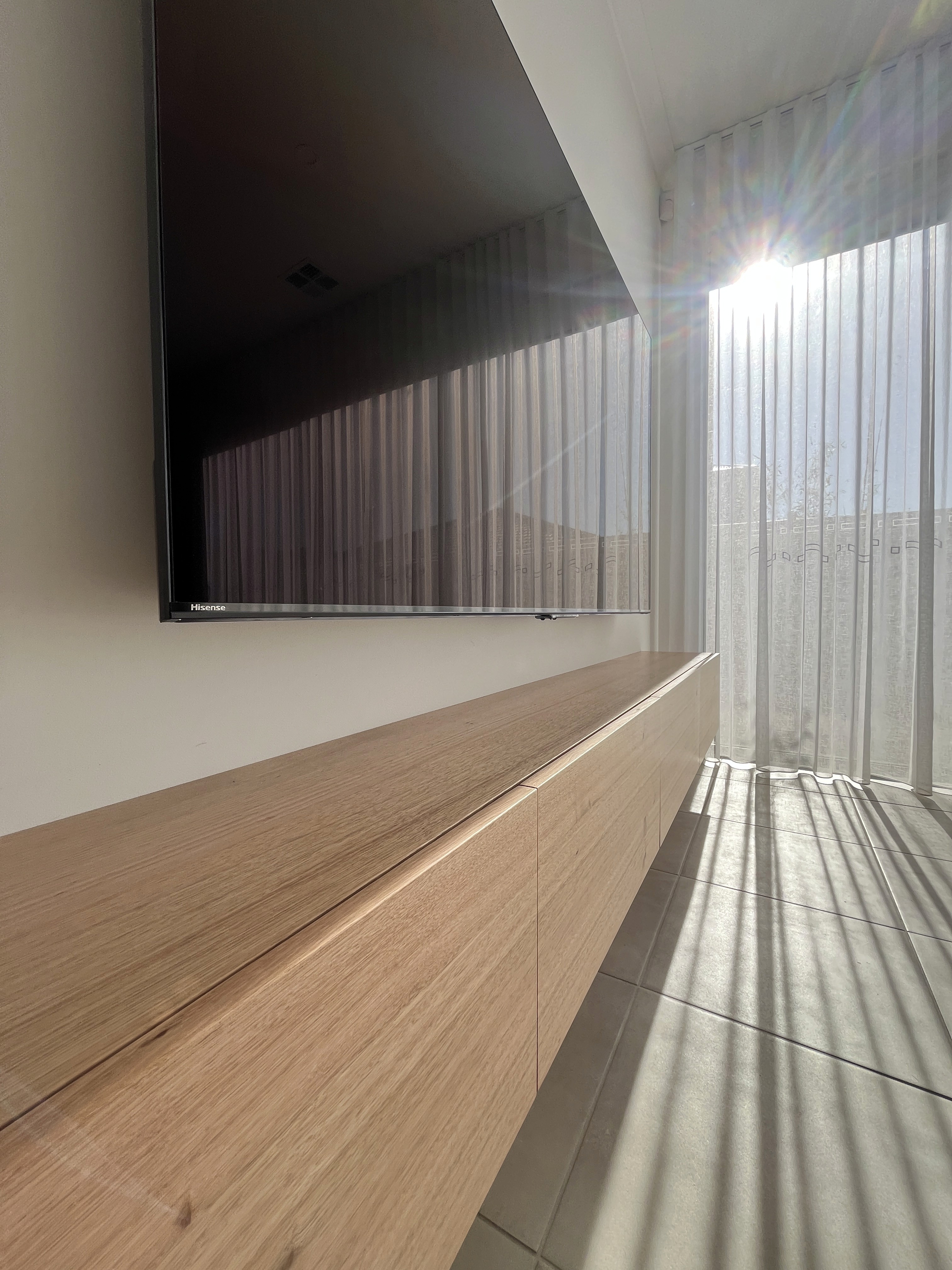 Crafted from solid Tasmanian Oak with softened, rounded timber edges, Luna brings clean geometry and subtle warmth together in a low-profile, wall-mounted design.